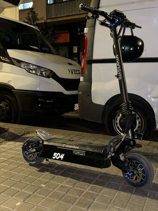 Patinete eléctrico SmartGyro Crossover Dual en color negro. Diseñado para ofrecer una experiencia de conducción versátil. - Doble motor. - Suspensión delantera y trasera. - Ruedas de 10 pulgadas. Llantas lisa 15 dias de averlas puesto lleva otra bateria 30 ah de autonomía hace 90 kilómetros de autonomía corriendolo a 45 centralitas deslimitadas cambiadas anda pesg azules los 4 detallistas azules entrego papeles y sertificado de sirculacion de la dgt está asegurado por 6 meses solo ahi que matrícularlo