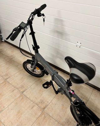 Bicicleta eléctrica plegable de la marca B'TWIN TILT 500 de 6vel. Bateria en muy buen estado entre 80 u 85 ٪ 24v. 25km.30km de recorrido en asistencia media, incluido cargador - Cuadro plegable. - Ruedas de 20" - Portaequipajes trasero. - neumaticos en perfecto estado con protector anti pinchazos - luz propia muy bien de frenos . No necesita acerle nada se encuentra en perfecto estado.