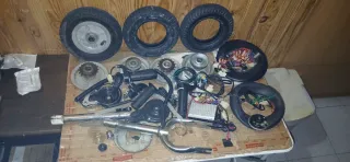 Lote de piezas para patinete eléctrico. - Ruedas - Manillar - Componentes electrónicos - Cadena y piñones - Frenos Son para el de la última foto (No separo)