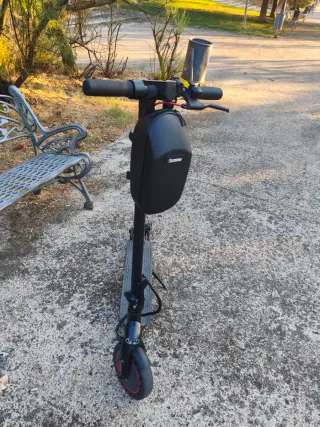 Patín eléctrico de color negro, ideal para desplazamientos urbanos. - Diseño moderno y funcional. - Manillar con agarres ergonómicos. - Plataforma antideslizante. Se a usado solo 1 mes. Cuando lo pones a cargar carga pero no aguanta la batería no sé si es un cable o la misma batería de hay su precio.