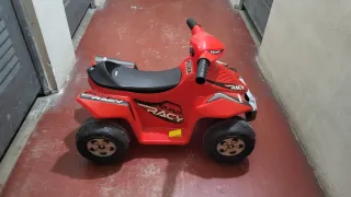 Quad electrónico infantil de color rojo, con diseño deportivo y llamativo. - Asiento cómodo. - Ruedas resistentes. - Detalles de diseño Quad Racy.