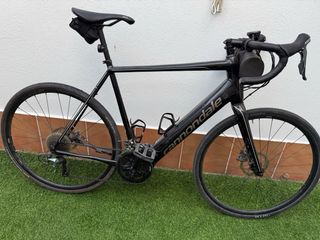 Bicicleta eléctrica Cannondale Synapse Neo 2 en color negro. - Cuadro de aluminio. - Motor Bosch. - Frenos de disco hidráulicos. - Cambio Shimano. - talla 58, adaptada a 56 con potencia corta. Entre 182 y 195 cm