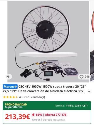 Rueda para bici eléctrica de 1000W, marca CSC, tamaño 27,5”. Está como nueva, incluye espaciadores y todo el cableado necesario. La vendo porque la compré pensando que la iba a usar, pero al final no me sirve. originalmente me costó 223€ con descuento