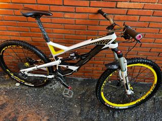 YT Capra pro de carbono. Freno delantero xo. Trasero xt. grupo xo. Horquilla bos deville 170mm. Y amortiguador bos kirk 170 mm. Disco trasero recién cambiado. Cuadro revisado sin holguras. Pastillas delanteras y trasera nuevas. Mouse y tubeless adelante y atrás. Tija reverb. Manillar Renthal. Vendo por cambio a eléctrica. talla L. Todos los componentes son tope de gama. Si ves una Capra más barata en Wallapop, mira si el cuadro es de carbono y si llantas, bujes, horquilla y amortiguador son tope de gama. Y vuelve a mirar el precio de esta. no negociable. YT. Cannondale. Specialized. commencal. FRS. Tues