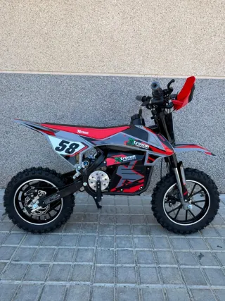 Minimoto eléctrica de 1000W y 36V, ideal para diversión. - Diseño deportivo en rojo y gris. - Ruedas todoterreno para mayor agarre. - Número 58 visible en el lateral. Limitador velocidad Pa ti a niños de 4 a 9/10 años Velocidad máxima 30 kmh Teléfono 675060645 Tienda online melopidoya.com