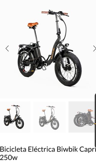 Bicicleta eléctrica Biwbik Capri de 250w con poco uso. - Diseño plegable. - Ruedas anchas para mayor estabilidad. - Sillín y puños en color marrón. Mirar y probar en persona No envio