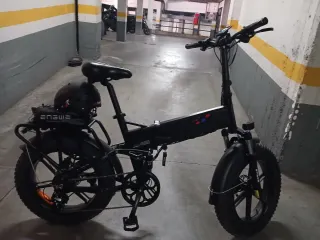 Bici eléctrica marca JANSNO X50 48V, batería desmontable de 48V 34Ah/17Ah, ruedas de 20 pulgadas, 7 velocidades. Comprada por capricho y usada 2 veces, nueva como se puede ver. Regalo candado e inflador manual. En Amazon podéis ver más detalles y opiniones y demás.