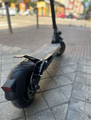 Patinete eléctrico de color gris, con un diseño moderno y funcional. Es plegable, lo que facilita su transporte y almacenamiento. - Manillar con puños texturizados. - Freno de disco en la rueda trasera. - Plataforma antideslizante. -Plegable -Ruedas que no se pinchan -Suspensión perfecta -Freno electrónico cambiado recientemente -Autonomía de 20km -Velocidad máxima en llano 30km/h -Batería en perfecto estado cambiada recientemente -Luz trasera y delantera -Viene con el cable de carga -Todo en regla El único defecto que tiene es el guardabarros trasero, por lo demas esta todo perfecto. Precio negociable.