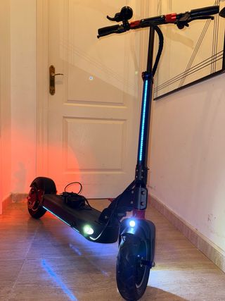 Patin eléctrico Zero 10 con luces LED, manillas ajustable, rueda trasera nueva, cargador y una cadena Motor: 1000W de potencia nominal del motor, 1600W pico max. Capacidad de escalada: 20% Batería: 52V 18Ah - 936Wh Rango óptimo: 70 km Tamaño de la rueda: 10" Frenos: Frenos de disco delanteros y traseros (freno de doble mano) Suspensión delantera y doble trasera Control de crucero: Sí Luz: Faro blanco, luz trasera roja + luz de freno. + Tiras de LED Sonido: Campana Plegable: Sí Soporta: Sí Tamaño Neumáticos: 10" x 2.5" Peso: 23 kg Conductor de peso: 120kg Se vende por que no se le da uso.