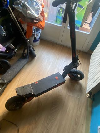 Patinete eléctrico skateflash con batería dañada, para piezas de repuesto o arreglo. Se vende tal como se ve en las imágenes. - Rueda trasera nueva, sin uso. - Manillar con puños y frenos. - Pantalla digital. - Base y rueda delantera.
