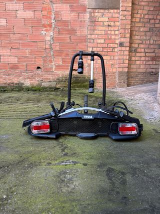 Portabicicletas Thule VeloCompact 925/927 – en buen estado Vendo portabicicletas Thule VeloCompact (modelo 925/927, ver etiqueta en fotos). Compatible con bola de remolque y con capacidad para transportar hasta 2 bicicletas. Todo funciona perfectamente: estructura, anclajes, correas, brazo de sujeción y conexión eléctrica de 7 pines. El único detalle es que la luz trasera izquierda está despegada, tal y como se ve en la foto. Funciona, pero está sujeta provisionalmente. Ideal para quien quiera un portabicicletas de calidad a buen precio.