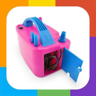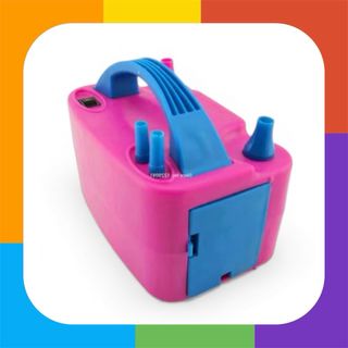 Inflador de globos eléctrico en color rosa con detalles en azul. Ideal para fiestas y eventos. - Dos boquillas para inflar. - Asa para transporte. - Compartimento para guardar el cable. Inflador de globos eléctrico