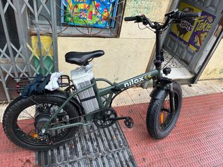 Bicicleta eléctrica Nilox con ruedas anchas tipo Fat Bike. Ideal para todo tipo de terrenos. - Color verde militar. - Batería extraíble. - Portabultos trasero.