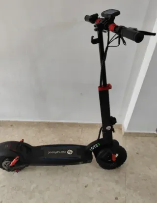 Patinete eléctrico con diseño moderno y robusto. - Ruedas todoterreno. - Luces LED frontales. - Manillar ajustable.
