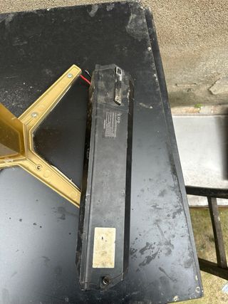 Batería de repuesto para bicicleta eléctrica. Diseño alargado y robusto. No se en que estado se encuentra.