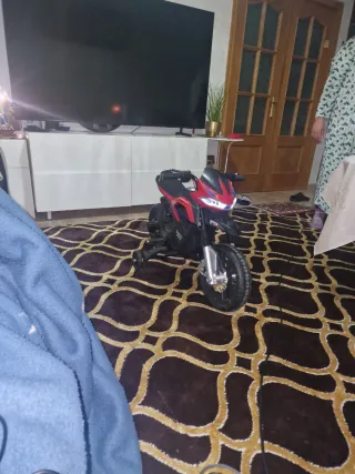 Moto eléctrica para niños en buen estado. Incluye su cargador original. - Diseño deportivo en color rojo y negro. - Ruedines de apoyo para mayor estabilidad.