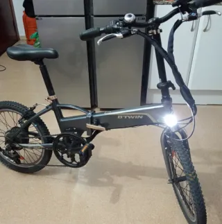 Bicicleta eléctrica plegable en excelente estado, prácticamente nueva. - Diseño plegable para fácil transporte y almacenamiento. - Motor eléctrico integrado en la rueda trasera. - Frenos de disco delanteros y traseros. - Guardabarros trasero.