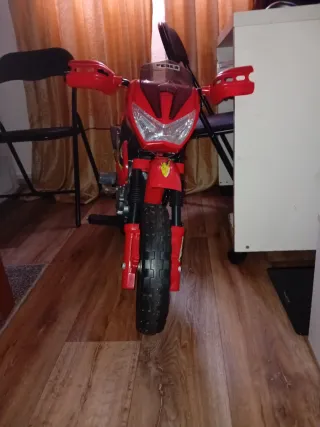 Moto eléctrica infantil de color rojo, ideal para los más pequeños. Incluye su cargador para que la diversión no pare. - Con luz frontal. - Sin usar.