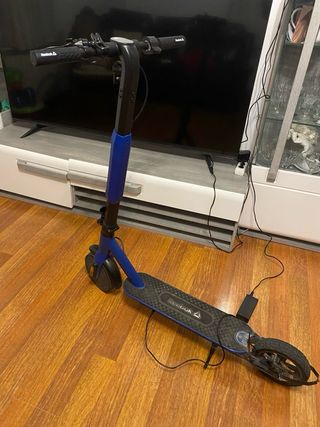 Patinete eléctrico Reebok en color azul y negro. Alcanza hasta 25 km/h y tiene una autonomía de 30 km. - Luces LED y intermitentes. - Potencia de 350 W. FUNCIONA PERFECTAMENTE LO DOY A ESE PRECIO PORQUE NO TENGO CARGADOR