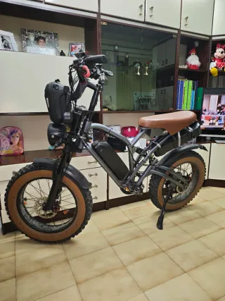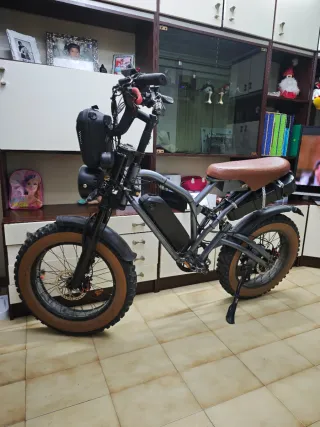 Bicicleta eléctrica Jazzy X50 con modificaciones. - Diseño robusto y llamativo. - Ruedas anchas para mayor estabilidad. - Sillín marrón de estilo clásico. - Batería 24 ah integrada en el cuadro. - Bolsa delantera para almacenamiento. Modificada con extra como = batería extra de 28.8 ah , frenos Hidráulicos ambos , suspensión mejorada , tiene alarma con mando y un botón para delimitarlo se pone a 55 k/h y limitarla a 25 k/h. Cubiertas de la buenas hay dinero invertido en ella la vendo porque casi no la uso ya . No envios solo venta en mano y porfavor no perder el tiempo .
