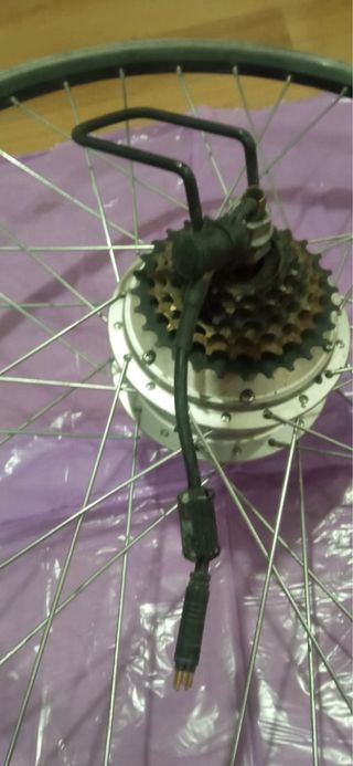 Vendo juego para electrificar bicicleta de 36v. Rueda de 26 pulgadas con piñón de seis velocidades. Todo el cableado y manetas están en buen estado con cableado eléctrico y sensor eje pedalier. Acompaño también cargador y batería (pero esta no funciona)del modelo Everyway E100 de Wayscral Display y sensor. Y rueda con motor.