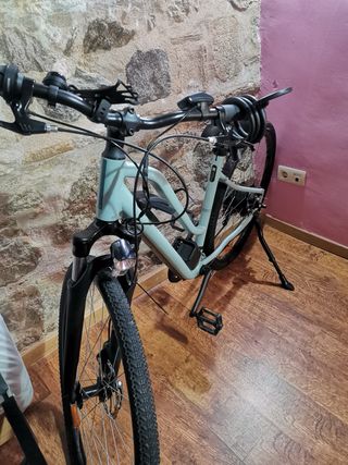 Vendo mi bicicleta eléctrica de montaña Cecotec e-Xplore, con cambio Shimano 7 velocidades, ruedas 27,5″, suspensión delantera y batería extraíble de 360Wh («hasta 55 km de autonomía») según fabricante. ✅ Estado: muy buena, apenas usada (lo guardo en garaje, uso ocasional) ✅ Motivo de venta: necesito espacio ✅ Ideal para ciudad + salidas por caminos fáciles ✅ Especificaciones principales: ruedas 27,5”, doble freno de disco, batería extraíble, cambio Shimano. ✅ Autonomía estimada Original: ~55km (dependiendo de uso/modo). 💶 Precio: 400€ (negociable) 📍 Zona: Toledo / Castilla-La Mancha (puedo entrega en mano o envío si se acuerda)