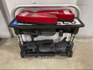 Portabicicletas marca De La Fuente. - Estructura robusta y plegable. - Incluye luces traseras y portamatrículas. - Conexión eléctrica para luces. - Porta señal