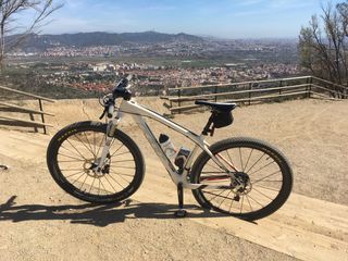 Mountain bike Felt Nine talla L Bici incredible, en carbono, super ligera. Varias partes originales han sido remplazadas para mejorar la performance como las horquillas FOX (de base llevaba Rockshock), el sillin SL-K y los 2 portabidones Raceface. Es una bici muy ligera y super performante. Características técnicas de la bicicleta: Talla LG (20”) Peso: 9.3kg Cuadro: Felt Nine fibra de carbono Horquilla: Fox con bloqueo PushLoc remoto para bloquear la horquilla manteniendo la mano en el manillar Manillar: Felt de carbono plana MTB Cambio monocorona SSRAM XX1 de 11 velocidades