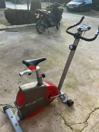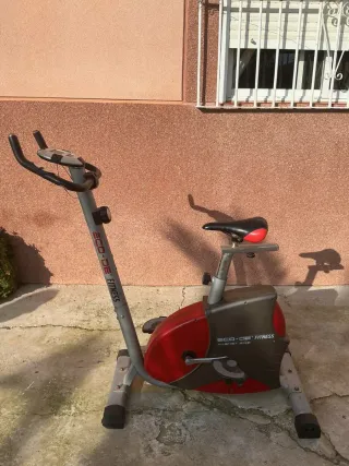 Bicicleta estática para entrenar en casa. Ideal para mantener la forma física. - Diseño compacto. - Asiento ajustable. - Manillar ergonómico. Le falta el aparato electrico para contabilizar km y calorias, lo quite para poner ahi en móvil ha que se rompio el original. Una de las rueditas tanboen se rompio. Me costo jueva €140 hace mas de 5 años pero el resto funciona perfectamente.