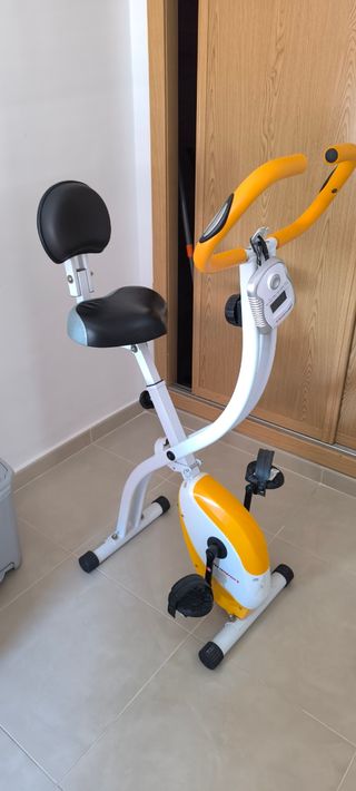 Se vende maravillosa bicicleta estática con poco uso. Se compró en el 2022. Lo único malo que tiene que se apaño el agarre del marcador.Dimensiones de la bicicleta de fitness (L x A x A): montada aprox. 96.5 x 46 x 119.5 cm, plegada aprox. 57 x 46 x 138 cm - adecuada para usuarios de hasta 110 kg de peso - color: Naranja/blanco.