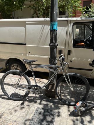 Preciosa bicicleta fixie de color cromado. Está en muy buen estado. - Llantas de color negro. - Sillín de cuero. - Modelo clásico. la estoy vendiendo porque está guardada en el trastero, no puedo dejarla abajo porque llama mucho la atencion y prefiero venderla antes de que la roben. negociable** puedo sacarla y tomarle mas fotos si es necesario, estoy abierto a hacer algun cambio, prefiero que sea por una bicicleta plegable, solo el sillin tiene valor de mas de 100€