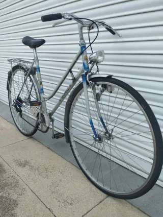Bicicleta de carretera clásica, ideal para coleccionistas o para disfrutar de paseos. - Cuadro de metal plateado. - Manillar azul. - Ruedas de radios. - 10vel. (5x2) - Neumaticos nuevos 700x25. - Cables y fundas nuevos. - Sillin de gel. - Alturas 1.65-1.80 cm. Clasica,retro,vintage,antigua,fixie,mendiz,gitane,look,contini, biondi,specialized,colnago,coppi,pinarello,focus,bh,orbea,torrot, rabasa,derbi,gac zeleris,triatlón,cinelli,gios,wilier,benotto,razesa, merida,trek,decathlon,btwin,rockrider,campagnolo,look,gimson, emporium,btt,monty,trialsin,motoretta,dal,cil,california,crosseta.