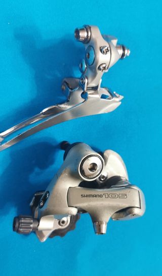 Conjunto de cambio trasero y desviador delantero Shimano 105. -Cambio RD-1056. -Desviador FD-1056 soldare. -2x8 velocidades. ___________________________________ Zeus, Campagnolo, Shimano, Alan, Vitus, Colnago, Pinarello, Bianchi, clásica, urbana, fixie, fixed, retro, eroica, Simplex, Triplex, Torrot, Orbea, BH, Peugeot, 3tt, Itm, Selle Italia, San Marco, Turbo, Turbomatic, Rolls, Concor, bicicleta, restauración, manillar, sillín, cambios, frenos, cuadro, ruedas, mecánica, taller, Peliser, Razesa, carretera, potencia, tija, pedales, bicicleta, 105, Ultegra, Dura Ace, Tiagra, Sora, Veloce, Mirage, Avanti, Athena, Chorus, Record,