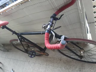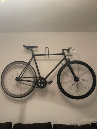 Fantastica fixie de apenas 7kg. Realizada con cuadro de acero tuberia columbus, comprado a ciclista profesional retirado y hecho a medida, talla aprox. 51. Rueda delantera shimano R5, trasera origin8 con freno contrapedal. Tija de aluminio, la más ligera del mercado, sillin de carbono. Manillar tipo cuerno de vaca con freno delantero shimano 105, cinta Cinelli negra. Una maravilla de fixie para volar x la ciudad!
