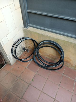 De izquierda a derecha: - Xentis Mark1 Shimano HG + tubular tufo para cambiar ---> 250€ - Mavic Cosmic 80 + tubular Conti Sprinter 22 ---> 300€ - Modolo 50 Shimano HG + Pirelli PZero Road 28 ---> 175€ Te hago descuento si te llevas más de una Precios negociables . . . Sram campagnolo hed dosnoventa cinelli mash vendetta leader fixie tt cabra triatlon