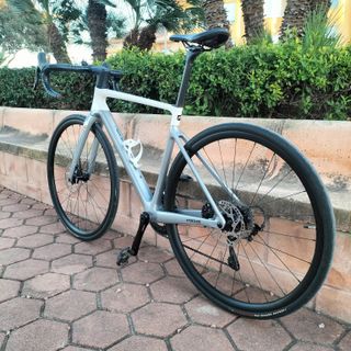 Cuadro y tija sillín y horquilla de carbono, cambio y frenos Shimano 105. Está como nueva comprada hace menos de un año.