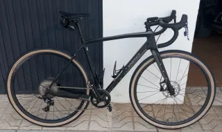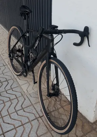Bicicleta gravel Bombtrack Hook en color negro y gris mate. Diseñada para ofrecer un rendimiento versátil en diferentes terrenos. - Cuadro y horquilla de carbono. - Ruedas de 700c con neumáticos anchos mixtos, cubiertas Victtoria Terreno Dry ( nuevas). - Frenos de disco hidráulico Sram Ápex. - Transmisión Sram Ápex 11/42 11 v detras 42t delante. - Pedales Shimano. - Vielas Sram Ápex. - Tija sillín Deda Zero. - Potencia Ritchey. - Manillar Deda gravel 100. - Peso 10kg. - Llantas Deda Elementi. - Talla M. Muy poco uso, muy pocos kilómetros. La vendo por no darle uso. Precio algo negociable.