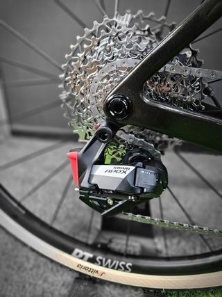 Cambio trasero nuevo retirado de una bici, SRAM Rival XPLR AXS de 12 velocidades. - Tecnología AXS para un cambio inalámbrico. - Diseño XPLR para gravel. - Acepta hasta 44T