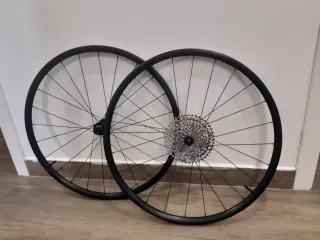 Juego completo de ruedas tubulares muy ligeras y resistentes. Tubular trasero nuevo y el delantero al 80% Incluyo cassette ultegra 11v Ideal tambien para gravel