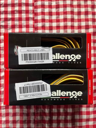 Dos cubiertas Challenge Limus, modelo Handmade Clincher. Ideales para ciclocross, cx, gravel. - 33 de ancho - Color: Negro con flancos amarillos. - Tipo: Clincher. - Fabricación: Hechas a mano. - No tienen ni 5km 50€ unidad 90€ juego