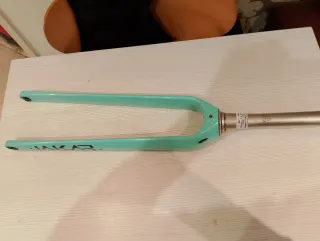 Horquilla de carbono para bicicletas gravel de la marca Megamo. Color verde menta con detalles en negro. Tubo cortado a 18.5cm - Material: Carbono - Color: Verde menta - Marca: Megamo
