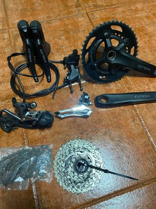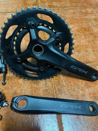 Grupo de componentes Shimano GRX 810 para bicicleta. GRAVEL Usado unos 500kms, nuevo - Manetas de cambio/freno GRX. - Cambio trasero GRX. - Desviador delantero GRX. - Bielas GRX 170 y 46-30 - Cassette 11-34 - Cadena. Perfecto estado, sin marcas, muy poco usado Sram red , force, rival, ultegra, dura ace, 105, campagnolo record, trek , bmc, factor