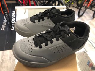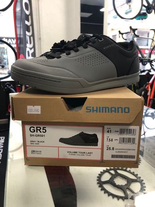 Zapatillas de ciclismo Shimano GR5 en color gris y negro. Modelo SH-GR501. - Talla EUR 41 / US 7.5-8 / CM 25.8. - Ideales para ciclismo Ebike y Gravel con pedales de plataforma. - Diseño Volume Tour Last para ofrecer confort durante todo el dia tanto en bici como fuera de ella. - Empeine sintético duradero con malla y proteccion en dedos y tobillo. - Calificación Bike Rated. - Precio tarifa de 109,99€ - DESCUENTO DEL 65% !!! Este juego por sólo !!! 38,49€ !!!