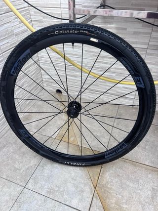 Juego de llantas Mavic Allroad SL de carbono con perfil de 42mm. Listas por montar y disfrutar. - Fabricadas en carbono. 24 Radios - Perfil de 42mm. - Ideales para gravel y carretera. -Discos de Freno 160mm Shimano Freeza -Cassette 105 nuevo- Relacion 11-36. -Cubiertas Victoria Terreno Dry 35mm, a medio uso. - Equipadas con mousse antipinchazos Tannus armour Lite en ambas ruedas. -Peso 1550 gr el par. -25 mm ancho interno aptas para cubiertas Tubeless de 30mm-64mm -Tamaño del eje: delantero 12x100 / trasero 12x142 Precio original 1.399 € peladas. Estas estan equipadas para llegar y montar sin preocuparte de nada.