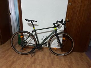 Bicicleta Triban Gravel 120 en buen estado. - Cuadro de aluminio. - Frenos de disco. - Ruedas de 700c con neumáticos anchos. Bicicleta Triban Gravel 120 en buen estado. Los puños han sido cambiados por unos negros (como se ve en una de las fotos). Además, se ha realizado el mantenimiento completo de la bicicleta. Dispongo de los documentos de la bicicleta. Solo recogida en persona.