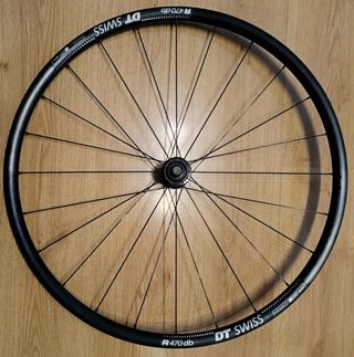 Ruedas de carretera/gravel para frenos de disco con llanta de aluminio, cuerpo Shimano y fijación de disco center lock. Ruedas de reserva, con poco uso. - Material: Aluminio. - Modelo: R470 DB. - Marca: DT Swiss. - Perfil: 23 mm. - Radios: 24. - Buje: FO R MULA Center Lock. - Eje delantero: 12 x 100. - Eje trasero: 12 x 142. - Núcleo compatible: Shimano/Sram 11 velocidades. - TUBELESS READY.