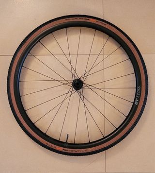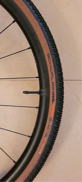 Rueda DT Swiss Gravel LN con cubierta Schwalbe G-One. - Llanta de aluminio. - Buje DT Swiss. - Cubierta Schwalbe G-One con flancos en color tostado.