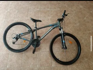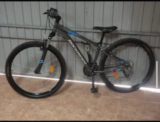 Bicicleta de montaña con muy poco uso esta nueva prácticamente, se puede ver sin compromiso. La bicicleta es una Rockrider ST 100, una bicicleta de montaña (MTB) de iniciación. Cuenta con un cuadro de aluminio. Las ruedas son de 27,5 pulgadas, ofreciendo un buen equilibrio entre manejabilidad y capacidad para superar obstáculos. Incluye suspensión delantera. El sistema de frenos puede ser V-brake o de disco, dependiendo de la variante exacta. Generalmente está equipada con un cambio de 21 velocidades (7x3).