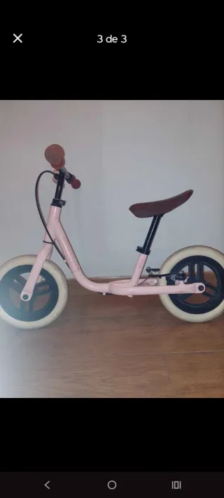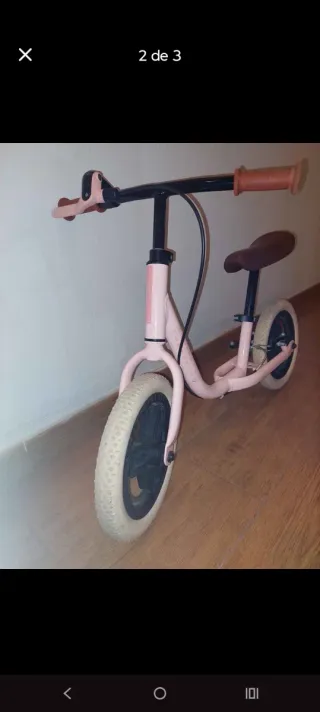 Bicicleta de aprendizaje para niños, ideal para iniciarse en el mundo de las dos ruedas. - Marco de metal resistente. - Ruedas de goma maciza. - Asiento y puños de color marrón. Se vende por haberse quedado pequeña, pero está como nueva y funciona perfectamente.