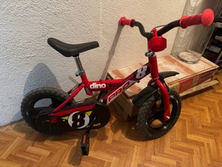 Bicicleta infantil de la marca Dino Bikes, color rojo. - Diseño deportivo con número 8. - Ruedines incluidos. - Ideal para iniciación.
